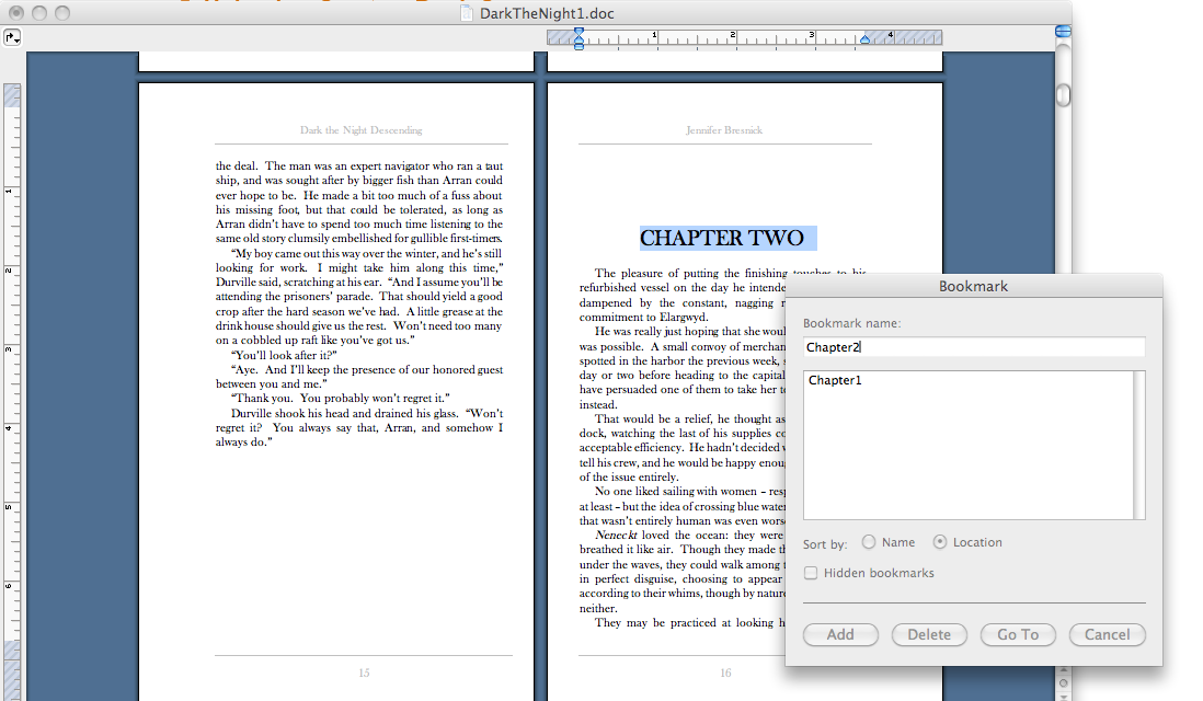 Name your bookmark something really creative like “ChapterOne”. It will have to be a single word with no spaces, but I believe underscores are okay.